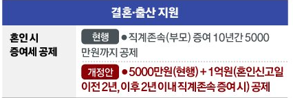 신랑과 신부 양가에서 모두 3억 원 까지는 세금 부담 없이 지원을 받을 수 있게 됩니다.